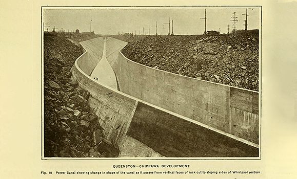 Photo Credit: Concrete-lined canal for the Queenston-Chippawa hydroelectric development in Southwestern Ontario, 1921. Published in Hydro-Electric Power Commission of Ontario, 鈥淥fficial Opening of the Queenston-Chippawa Power Development on the Twenty-eighth day of December MCMXXI by the Hydro-Electric Commission of Ontario鈥 (1921). Public Domain.